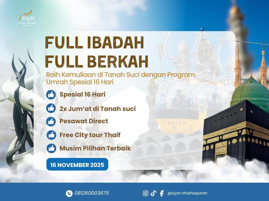 - Pelunasan maksimal 45 hari sebelum tanggal keberangkatan.